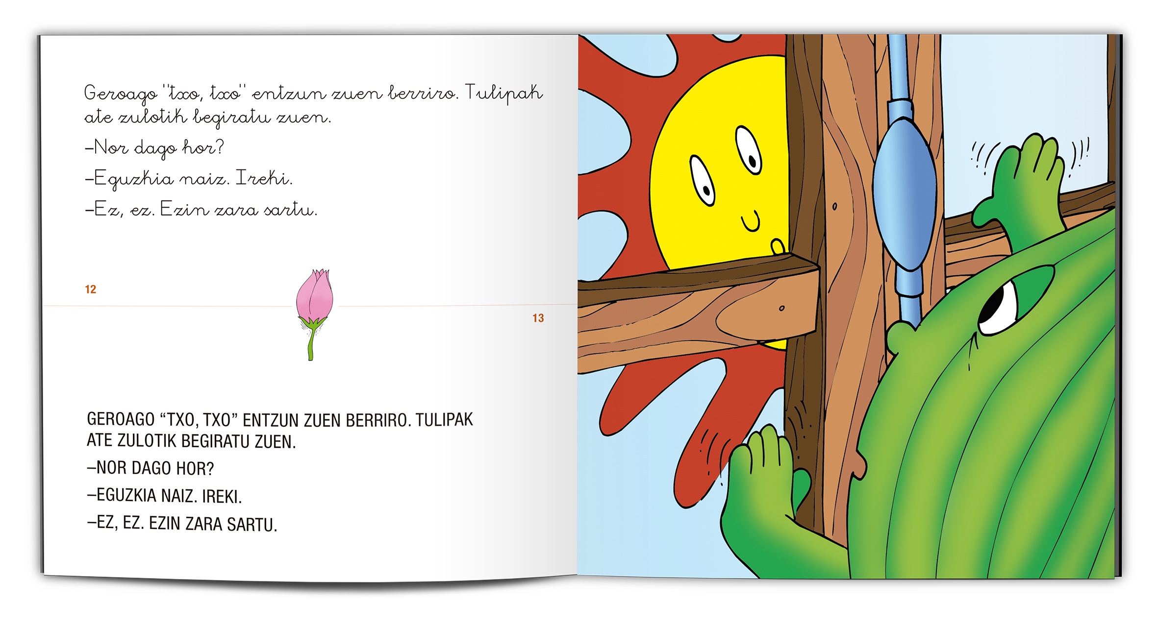 • Letra xehez eta larriz ageri da testu berbera ezker aldeko orrian eta eskuin aldekoan aldiz marrazkia.